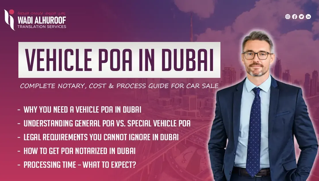 - Arabic/Bilingual Requirement: Legal documents issued in Dubai must be written in Arabic. For those who are expats, a dual document format (English as well as Arabic) is required to ensure that both the owner and the Notary Public can comprehend the content.